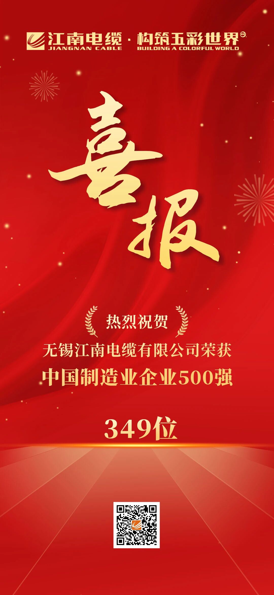 【喜报】江南电缆荣获2025中国制造业企业500强!