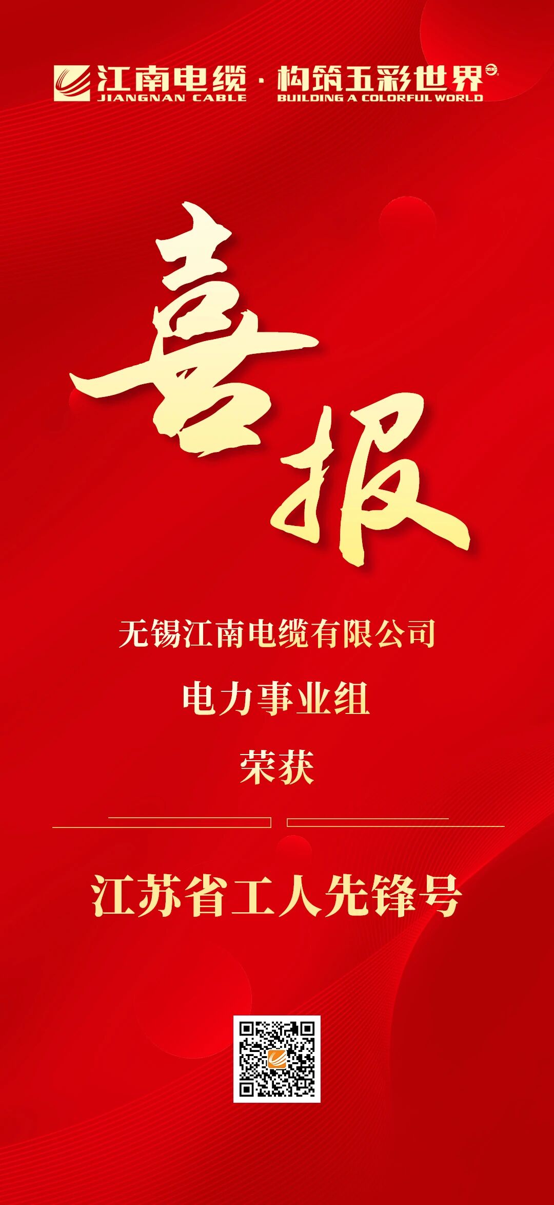 【喜报】江南电缆电力事业组荣获江苏省工人先锋号!