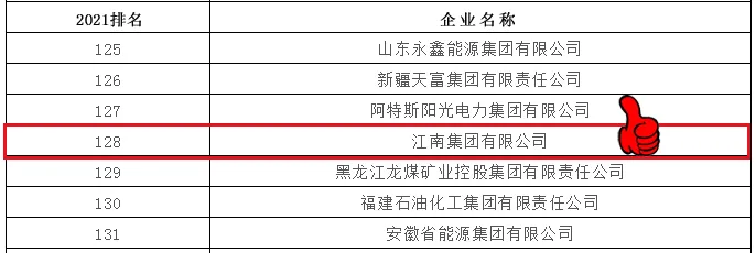 近日,由中国能源报社与中国能源经济研究院共同组织评选的2021中国能源(集团)500强榜单重磅发布,江南集团位列第128位。